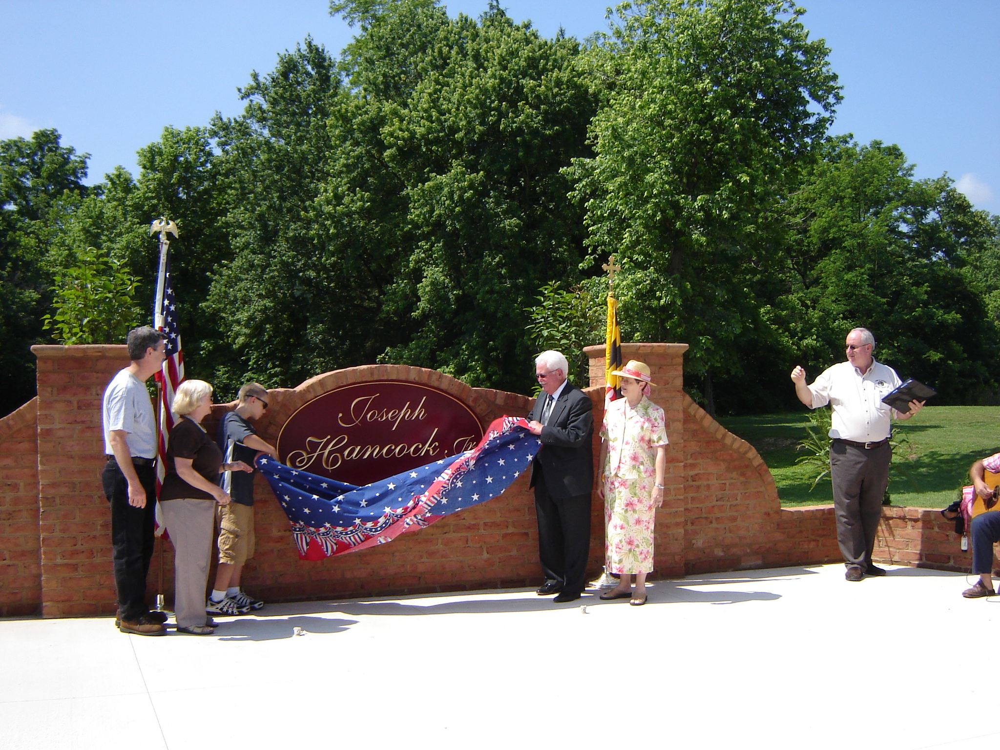 Ironically, I drove by Hancock on the way to Virginia about 10 years ago. I had a strange feeling that there might be a connection but dismissed it as wishful thinking. Little did I know that I would be standing here today participating in the dedication of this park to my fourth great grandfather, Joseph Hancock.